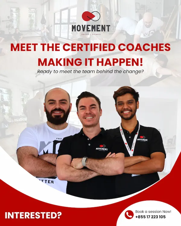 EXCELLENT Based on 138 reviews Posted on Brett MedlinTrustindex verifies that the original source of the review is Google. I’ve had a great experience here for the past 3 months. Ritesh created a program that has greatly improved my back pain and mobility while also helping me improve at a safe pace. He is also thorough to explain everything. I highly recommend Movement for any physical therapy or strength training program needs.Posted on JHTrustindex verifies that the original source of the review is Google. I am an ordinary man who is extremely passionate about various sports. Earlier this year, I went through a lower back injury rehabilitation program with Mark for about two months. Due to my back injury, I had developed a strong fear of movement and became overly cautious about using my body. During the first month, under Mark’s guidance, I gradually worked on increasing the range of motion in my lower back. This process gave me a huge realization—that it was okay to move my back and that I could move again. In the following month, we progressively focused on rebuilding my core strength and overall muscle strength. With Mark’s detailed and step-by-step coaching, I was able to recover my strength safely. Within just two months, I felt that my body had recovered to over 80%. By 80%, I mean that my physical performance had returned to about 80% of what it was before my back injury. In other words, the pain had completely disappeared within two months, and I was able to use about 80% of my strength during intense exercise. Now, about 10 months later, yours might be wondering what level my physical ability is at. At this point, my body has fully returned to its previous condition, to the extent that I can perform intense activities such as golf and boxing at 100% capacity. Mark not only provides rehabilitation guidance, but is also an excellent coach who helps improve strength and builds psychological confidence. I am truly happy that I met Mark, and I am still very grateful to him. You might be wondering why I am writing this now later 10 months. The reason is that after completing rehabilitation with Mark, I wanted to spend enough time exercising as I did before and i want to make sure there were no issues and no pain before sharing my experience. I have personally proven Mark’s rehabilitation program through my own body. Through this message, I would like to once again express my sincere gratitude to Mark. Thank you.Posted on Chrystele PitzalisTrustindex verifies that the original source of the review is Google. Very good place and professional therapists !Posted on nguyen nhatlongTrustindex verifies that the original source of the review is Google. So lucky to find this studios, literally saved me during my training weeks in cambodia. I had tight calfs and psoas, Ritesh made it goes away after 2 sessions and now i can go compete in a golf tournament. The therapist also gives feed back and exercise to do. Definitely a hidden gems in Cambodia.Posted on Darren DermodyTrustindex verifies that the original source of the review is Google. Awesome help from Marc and Steve. Have now been assessed by these pros and on my way to shoulder treatments in the future. I can %100 recommend these pros. Very grateful to Movement.Posted on Matthias LendiTrustindex verifies that the original source of the review is Google. I was very happy with the treatment from Saojal Ritesh, even though I could only do one session. He examined me very thoroughly and gave me great advice. Through the app, he also provided excellent exercises to continue at home. I really appreciated his professional and helpful approach. Thank you very much!Posted on Ann jaTrustindex verifies that the original source of the review is Google. Good service, well known being and value trainer.Posted on Hadiyyah KhanTrustindex verifies that the original source of the review is Google. Brilliant physio! I noticed some clicking and joint stiffness since starting my job. I was deeply concerned about resuming working out and wanted to make sure I didn't injure myself more. Trouble is I never have free time to see anyone. Mark was brilliant and managed to schedule an appointment next day during my lunch. Discovered what was causing my stiffness, got a plan to fix it and an explanation of what to do moving forward.Posted on Jeremy SalomeTrustindex verifies that the original source of the review is Google. Mark and his team at Movement are amazing. They have helped me with a variety of injuries over the past 2 years. No matter the issue they can create a plan to get you feeling strong & ready to participate in the activities you enjoy. Thanks Mark & team!